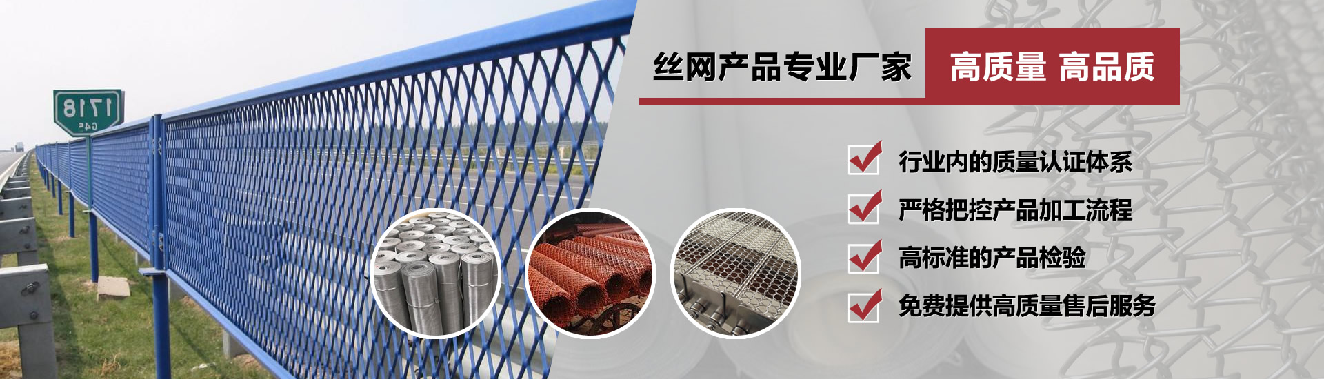公司不僅有大型鋼板網(wǎng)機數(shù)臺,大型全自動數(shù)控網(wǎng)片機,單股、雙絲刺繩機等先進的生產(chǎn)設(shè)備及精確的檢測儀器...